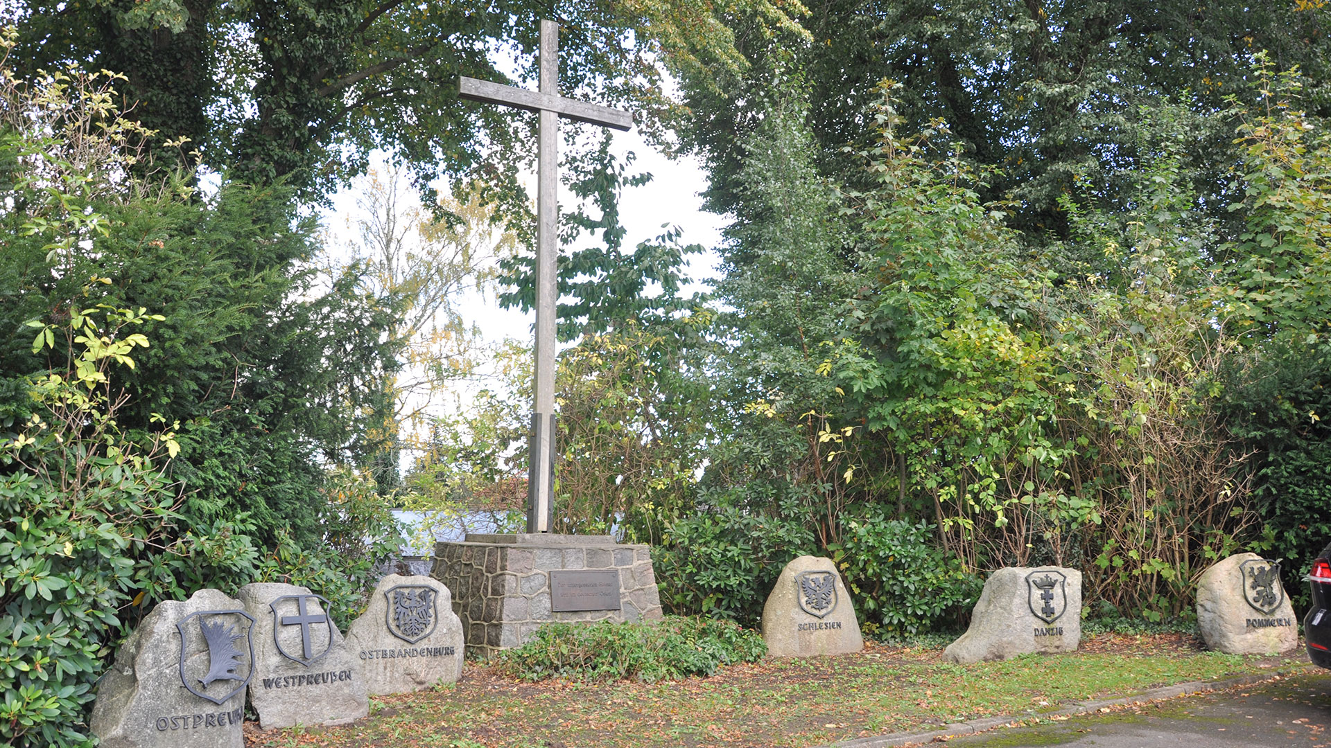 Dieses Denkmal in der Nähe des Heimatmuseums erinnert an die ehemaligen deutschen Ostgebiete und an 'Flucht und Vertreibung'